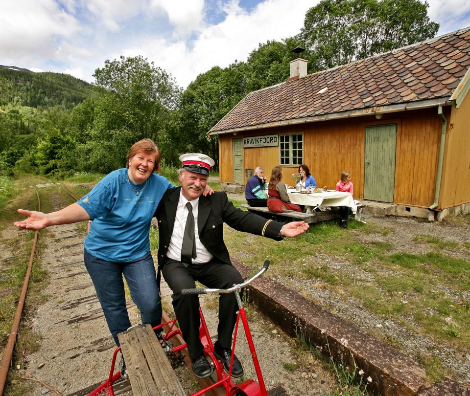 Ved Veggli Vertshus kan du leie dresiner og sykle den nedlagte Numedalsbanen, fra Veggli til Rødberg.